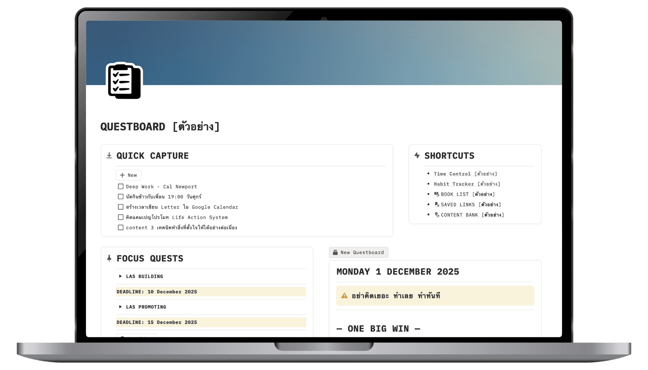 เทมเพลต Notion จัดการงาน พิชิตงานสำคัญต่อเนื่อง