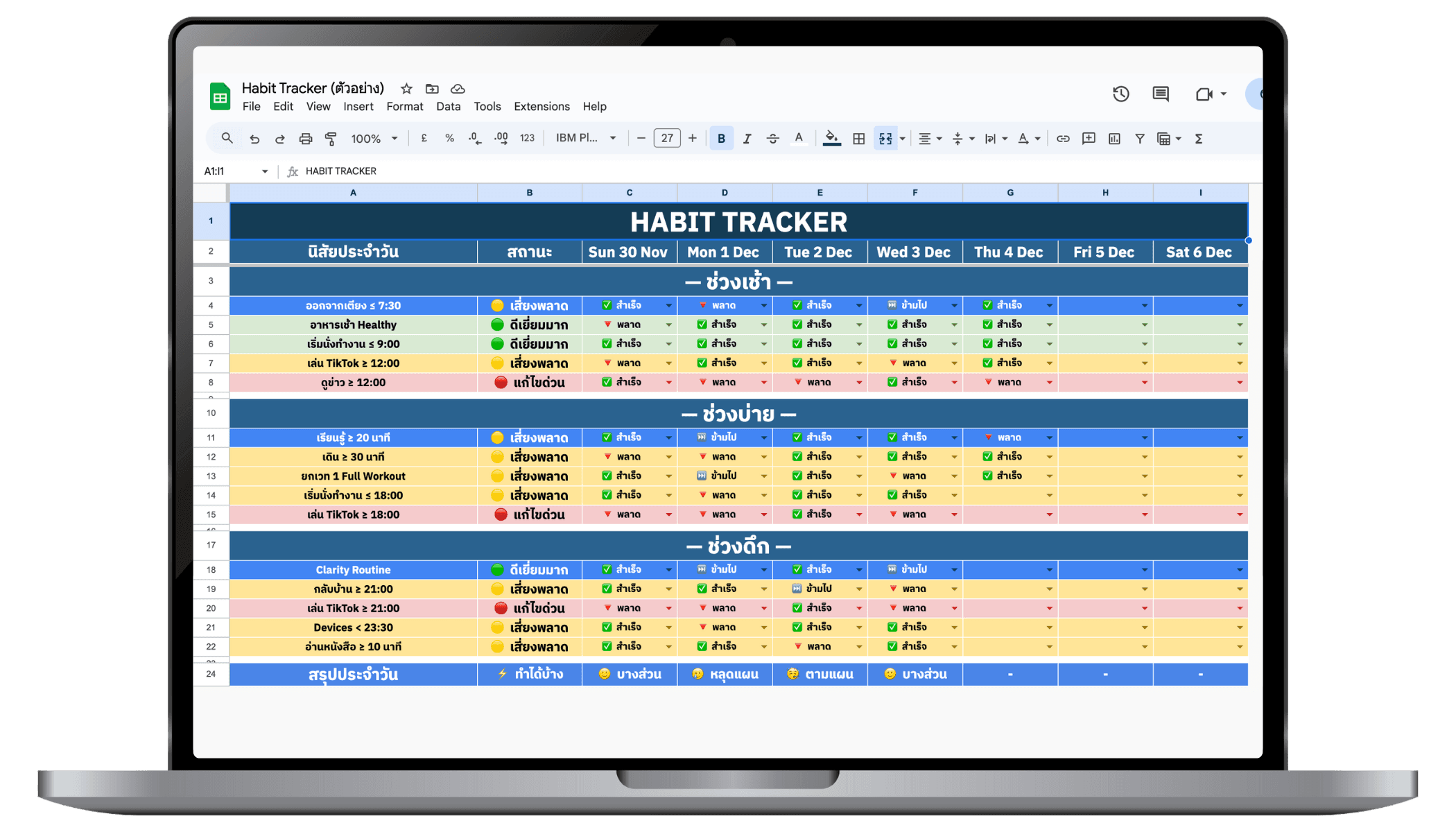 เทมเพลต Google Sheets ติดตามนิสัยที่ต้องการสร้าง